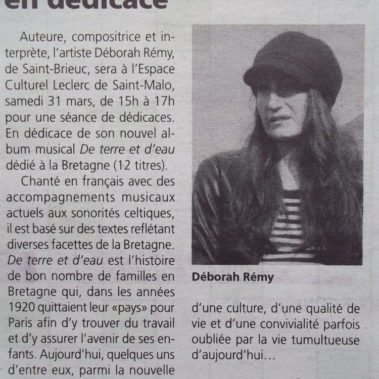 Retrouvez toutes les dates de diffusion des titres de l’album de Déborah Remy sur la Webradio de musique bretonne « CanalBreizh », et l’aimable soutien de l’association TAMM-KREIZ.